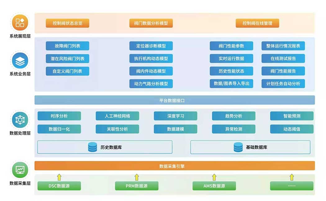 調節(jié)閥智能分析診斷軟件通過工業(yè)常用的通訊協(xié)議,對工業(yè)生產(chǎn)現(xiàn)場的各類調節(jié)閥(帶智能定位器或通訊板卡的閥門)進行在線分析和智能監(jiān)控,實現(xiàn)實時數(shù)據(jù)采集、在線診斷、一體化管理、風險提前預警、故障快速定位,輔助提升儀表運維人員工作效率,保障工業(yè)生產(chǎn)穩(wěn)定運行。主要提供四大基礎功能,六項專業(yè)能力。